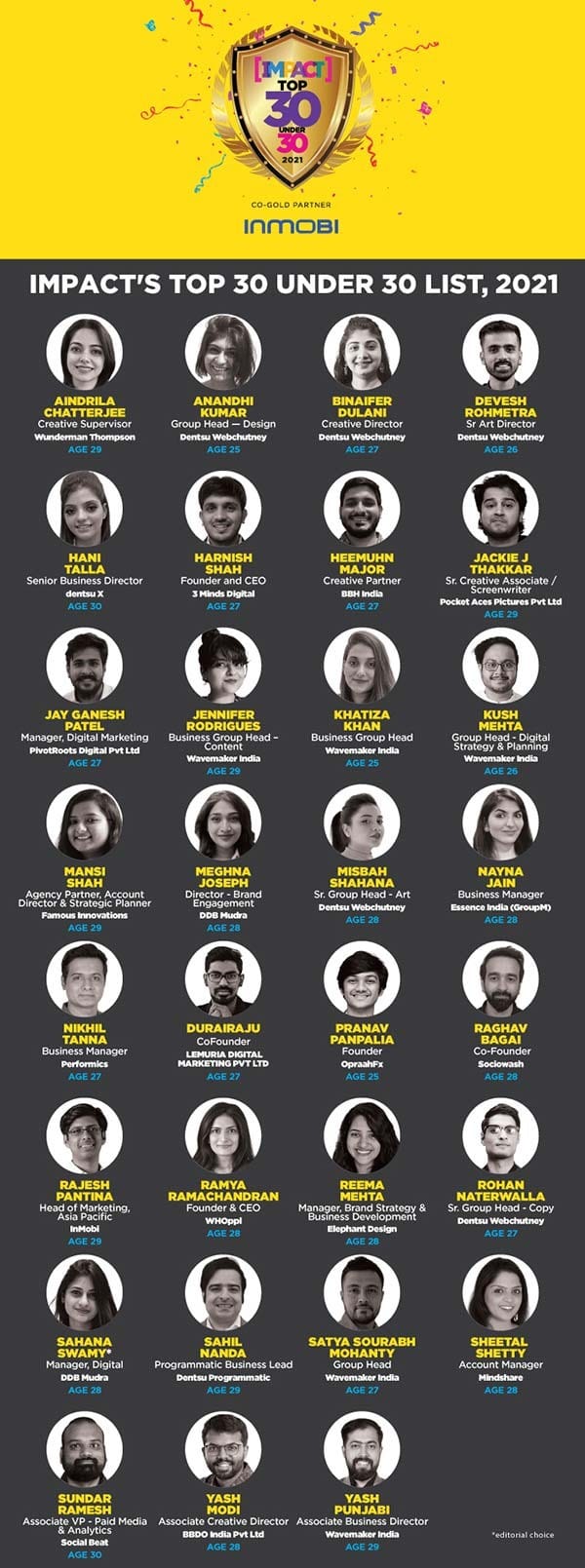 InMobi is the Co-Gold Partner for the IMPACT Top 30 Under 30 list, 2021.